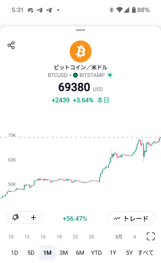 もう$70,000超えるのもスグですね❗